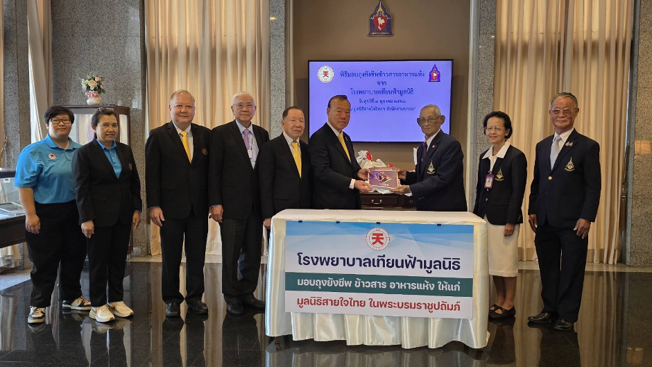 เมื่อวันที่ 3 ตุลาคม 2568 โรงพยาบาลเทียนฟ้ามูลนิธิ นำโดยนายสมัย กวักเพฑูรย์ ประธานกรรมการฯ และคณะ เดินทางมามอบถุงยังชีพ จำนวน 1,000 ชุด ให้แก่มูลนิธิสายใจไทย ในพระบรมราชูปถัมภ์ โดยมี พลโท ธำรงรัตน์ แก้วกาญจน์ รองประธานกรรมการมูลนิธิฯ พร้อมคณะ เป็นผู้แทนรับมอบ